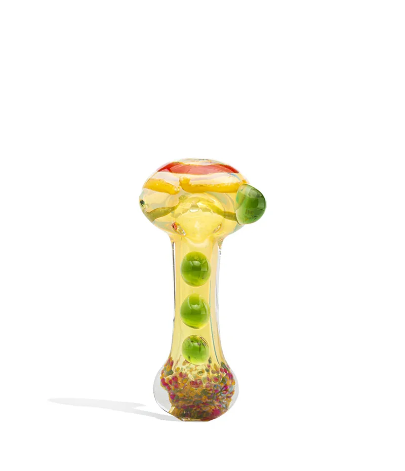 Hasta La Rasta You'll love the portability and Rasta-inspired design of the 4 Inch Hand Pipe with Rasta Marbles for your dry herb sessions. Its compact 4-inch size makes it easy to carry with you on the go. With three green marble glass accents and a side marble on the bowl to prevent rolling, it not only adds a unique design but also ensures stability. The deep bowl is perfect for efficient herb packing. This collection is meticulously curated to elevate your vaping experience, offering efficient devices and tools for every enjoyable session. What’s Included: (1) 4 inch Hand Pipe with Rasta Marbles