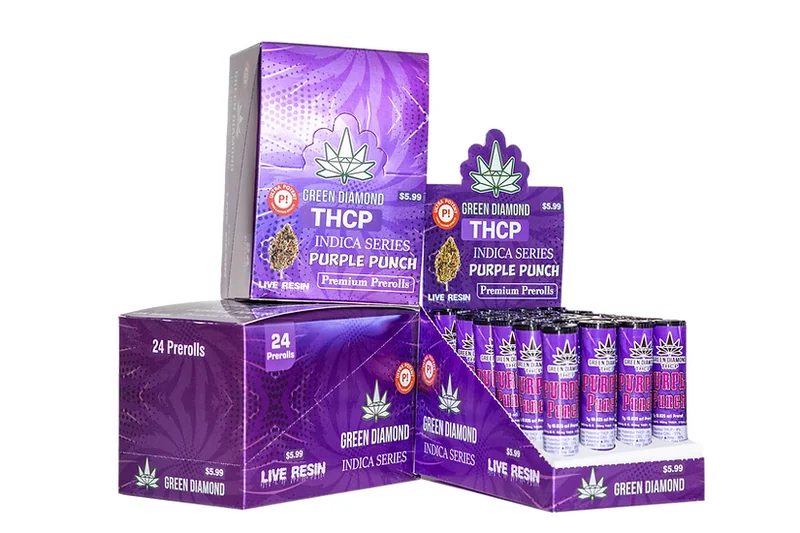 Green Diamond THC-P Pre Rolls 1g – Potent, Premium, Ready-to-Smoke The Green Diamond THC-P Pre Roll 1g offers a high-quality, ready-to-enjoy experience crafted for cannabis connoisseurs and newcomers alike. Each pre-roll is packed with premium THC-P flower, delivering potent effects, rich flavor, and a smooth burn from start to finish. Expertly rolled for consistency and convenience, this 1g pre-roll is perfect for solo sessions or sharing. Made from high-grade, lab-tested hemp, Green Diamond pre-rolls ensure purity, potency, and compliance with federal standards (<0.3% Delta-9 THC). Whether you're looking to elevate your retail shelves or stock reliable, high-performing products for wholesale distribution, Green Diamond THC-A Pre Rolls are a must-have for any quality cannabis collection. Product Features: Content: 1g of Premium THC-P Flower Cannabinoid: THC-P – Known for Clean, Potent Effects Pre-Rolled: Ready to Smoke with a Smooth, Even Burn Lab Tested: Verified for Potency, Purity & Compliance Perfect for Retail & Wholesale Customers Flavors: Green Crack Type: Sativa Grown: Light Deps Oregon Effects: Energetic, Focused, Talkative Flavor Profile: Tangy, Fruity Lemon Cherry Gelato Type: Hybrid (Balanced or Slightly Indica-Leaning) Effects: Euphoric & Uplifting, Relaxing but Functional, Creative & Focused, Calming & Sleepy (at higher doses) Flavor Profile: Zesty Lemon – Bright, citrus-forward notes, Sweet Cherry – Juicy and slightly tart and Creamy & Smooth – Dessert-like, with hints of vanilla and gelato richness Purple Punch Type: Indica Effects: Relaxed, Munchies, Sleepy Flavor Profile: Grape, Berry Includes:1 x Green Diamond THC-P Pre Roll 1g Offer your customers a premium, no-fuss smoke with Green Diamond THC-P Pre Rolls—crafted for flavor, strength, and satisfaction.