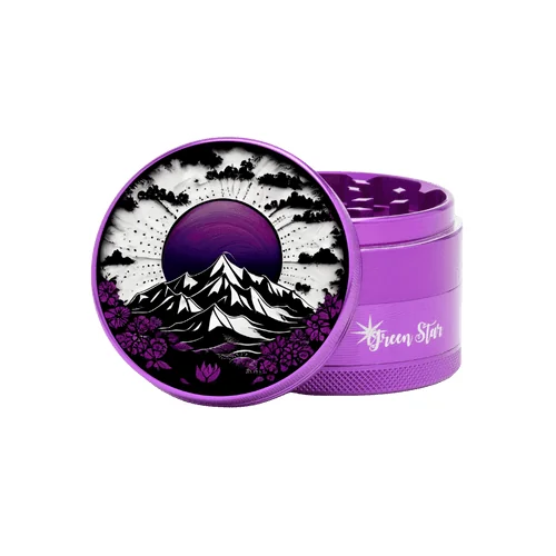 The 4 Piece 2.5" Purple Mountain Mandala Herb Grinder by Green Star is a premium smoking accessory. Suggested retail price $25.00. Ships directly from manufacturer. Perfect for retail display and consistent seller. Available at wholesale pricing from Port City Wholesale.