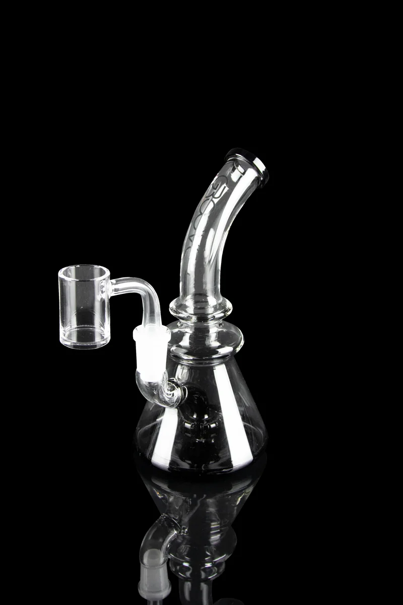 Whether you’re just getting into concentrates or consider yourself a connoisseur, the 7-inch tall Banger Hanger Water Pipe by Groove will help you get your dab groove going. This dab rig is constructed of high-quality glass that can stand up to the rigors of daily use. It's outfitted with a 14.5mm female joint that’s positioned at a 90 degree angle and a fixed downstem. It comes with a 14.5mm male banger with a deep bucket that’s perfect for big dabs. The neck of this rig is bent for comfortable use and the beaker-style base keeps it steady when placed on a table between rips. The maria rings between the neck and the base provide you with a good grip.