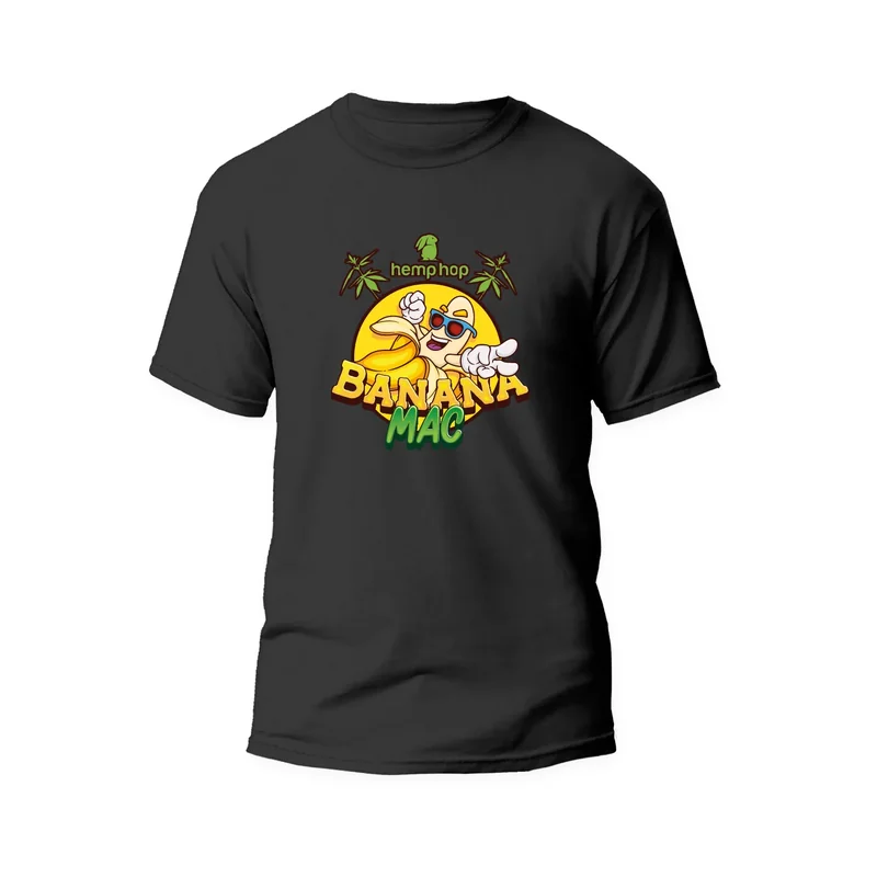 Banana MAC is a legendary cannabis strain, originally bred by the breeder Capulator, with a Type II Hemp genetic in 2021. Cherish the memory of this epic variety, depicted in a comfortable Unisex T-shirt. 60% Combed Ring-Spun Cotton, 40% Polyester
