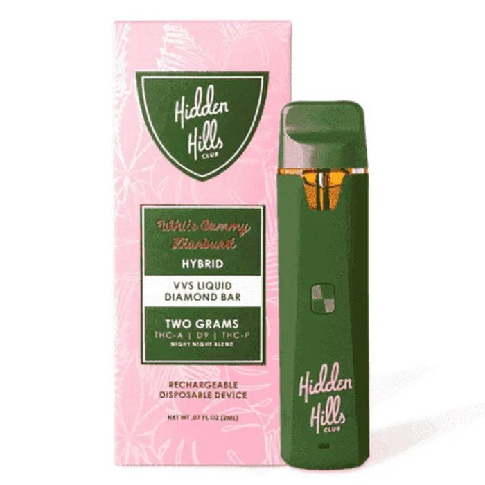 Elevate your vaping experience with the Hidden Hills Club Night Night Blend Vape. Each 2g cartridge is packed with a potent blend of THC-A, Delta-9, and THC-P, derived from premium hemp. These cartridges are carefully crafted to deliver a smooth, flavorful hit while offering a variety of effects. Plus, they’re 3rd-party lab tested to ensure top-tier quality and safety. Product Details: Content: 2g per cartridge (5 per pack) Cannabinoid Blend: THC-A + Delta-9 + THC-P Hemp-Infused: Premium formulation Lab-Tested: 3rd-party verified for purity and potency Flavor Profiles: Lemon Cherry Zkittlez (Sativa)A bright burst of citrus and cherry sweetness, this strain delivers a zesty tang with subtle notes of tropical candy. Perfect for an uplifting and flavorful experience. Limey Znow Conez (Sativa)A frosty, lime-infused delight with hints of tart lemon and a refreshing, icy undertone. This strain offers a cool and invigorating citrus rush. Purplato Zyrup (Indica)Indulge in the rich and soothing flavors of ripe berries and sweet grape syrup, wrapped in a velvety smooth finish. A perfect evening companion for relaxation. White Gummy Ztarburst (Hybrid)A delectable blend of creamy tropical fruits and tangy citrus, reminiscent of your favorite chewy candy. Balanced and energizing for any time of day. Zaberry Nerdz (Hybrid)A playful mix of tart berries and sugary sweetness, this strain is like diving into a box of your favorite tangy treats. A vibrant and versatile choice for any mood. Designed for vape enthusiasts, these vapes deliver rich, full-bodied flavors that enhance your vaping experience.