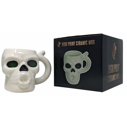The High Point Glass - Ceramic Pipe Mug - Skull is a premium smoking accessory. Suggested retail price $25.00. Perfect for retail display and consistent seller. Available at wholesale pricing from Port City Wholesale.