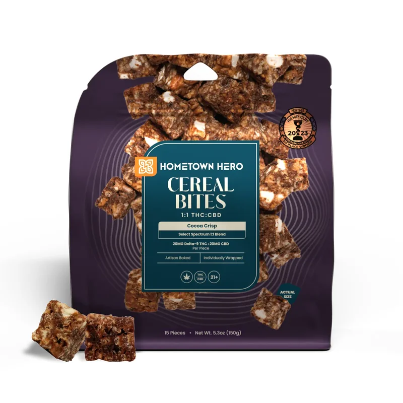 Shop/Products/Hometown Hero Cocoa Crisp - Cereal Bites 20mg THC + 20mg CBD