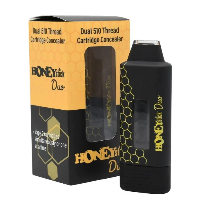 Introducing the HoneyStick DUO Cart Vape, an autodraw dual cartridge battery designed for effortless vaping. This innovative device allows you to enjoy one or two 510 cartridges simultaneously, offering buttonless, draw-controlled functionality for a user-friendly experience. With its seamless design and intuitive features, the DUO Cart Vape provides a convenient and enjoyable way to indulge in your favorite e-liquids or concentrates.