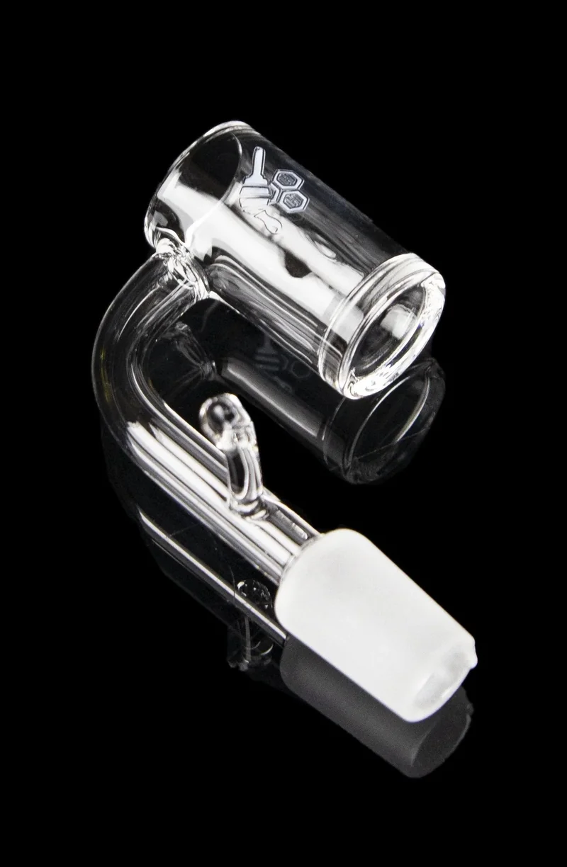 Bring your dab game to a whole new level with this premium quartz banger. Specially designed for use with enails, this banger is designed to boost flavor, potency and efficiency with your dabs. The banger has a 20mm outer diameter and an elongated shape, allowing you to use fat slabs of concentrate. The banger is made with 2mm thick pure quartz and has a base thickness of 4mm, for impressive durability and heat regulation. It has a 90 degree frosted joint for a sleek look, and comes in multiple sizes.