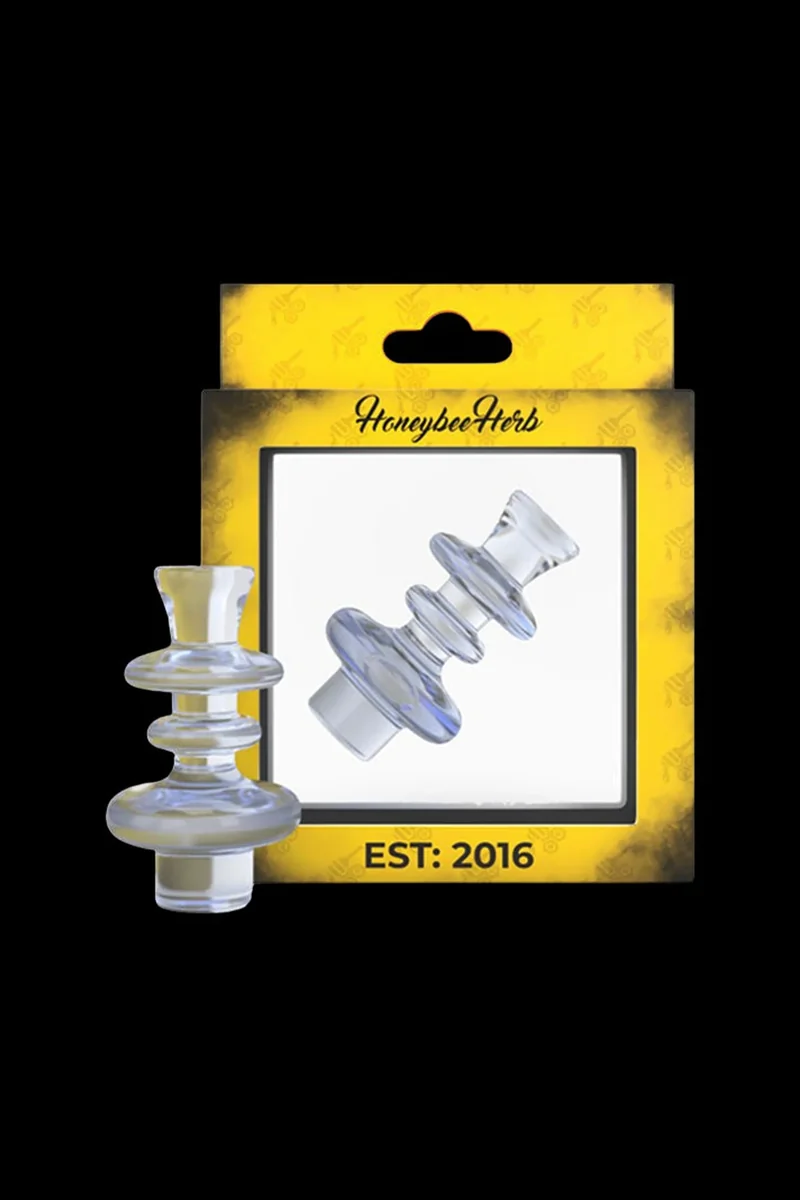 Make yourself the envy of your whole friend circle with the Ghost Glass Slurper Carb Cap. This spinner-style carb cap comes in two beautiful color combinations and is sure to be a showstopper at your next sesh! The slurper-style carb cap design allows ample movement with terp pearls . The multi-use design allows the cap to be used with or without terp pearls. The design is perfect for even heat distribution and making sure that your product is vaporized effectively, leaving minimal pooling and waste. Material - Glass Universally Compatible - No Outer Diameter - 25mm Height - 30mm Auto Spin - Yes