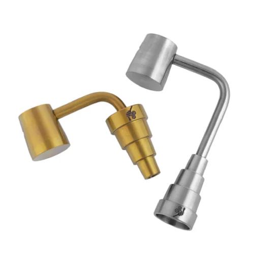 Titanium 6-in-1 Long-Neck Banger by Honeybee Herb. Well-made, functional, and priced to move. A solid addition to any smoke shop's product lineup. Suggested retail: $24.99.