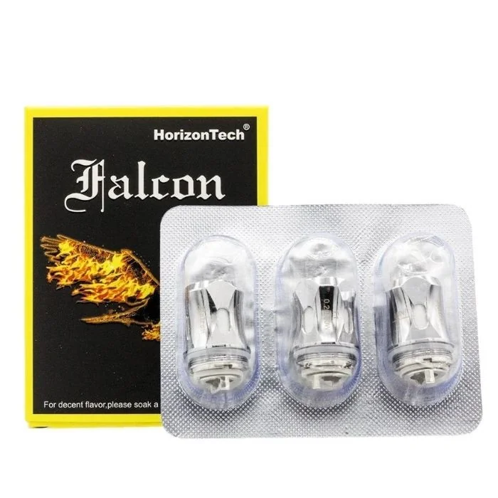 The Horizon Falcon Replacement Coils are replacement coils designed for the Falcon Sub-Ohm Tank and produce maximum flavor and vapor production. Each pack of coils comes with three (3) replacement atomizers with vertically oriented coils or mesh, and utilize either organic cotton with wood pulp or flax paper and flax fiber liquid guiding system. Features: F2: (0.2ohm) Natural flax fiber. F3: (0.2ohm) Flax fiber & flax paper. M1: (Mesh 0.15ohm) 30% wood pulp + 70% cotton. M2: (Mesh 0.16ohm) . M-Triple Coil: (0.15ohm Mesh). M1+ Coil: (0.16ohm Mesh). M-Dual: (0.38ohm Mesh).