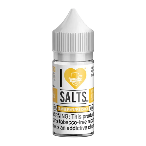 NICOTINE SALTS | SINGLE BOTTLE Flavor : The Orange Pineapple Crush I Love Salts vape juice provides a light, tropical mix of orange and pineapple flavors. E-liquid contents : 30mL Nicotine Strengths : 25mg and 50mg Blended for use with Pod Systems Browse more E-Liquid Brands Here