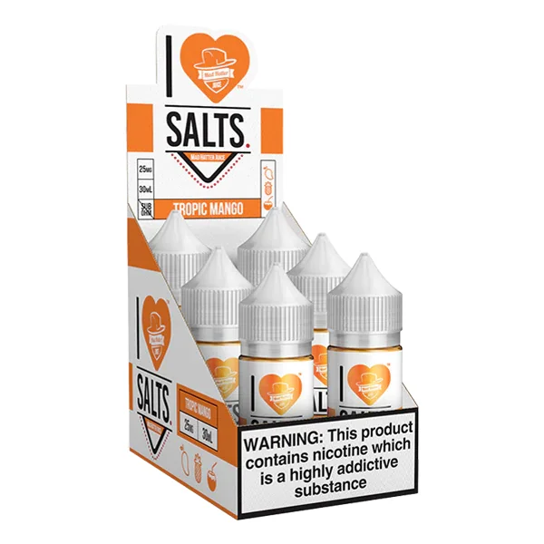 NICOTINE SALTS | PACK OF 6 Flavor : Tropic Mango is a very sweet blend of ripened mango flavor, mixed to fruity perfection. E-liquid contents : 30mL Nicotine Strengths : 25mg and 50mg Blended for use with Pod Systems Browse more E-Liquid Brands Here