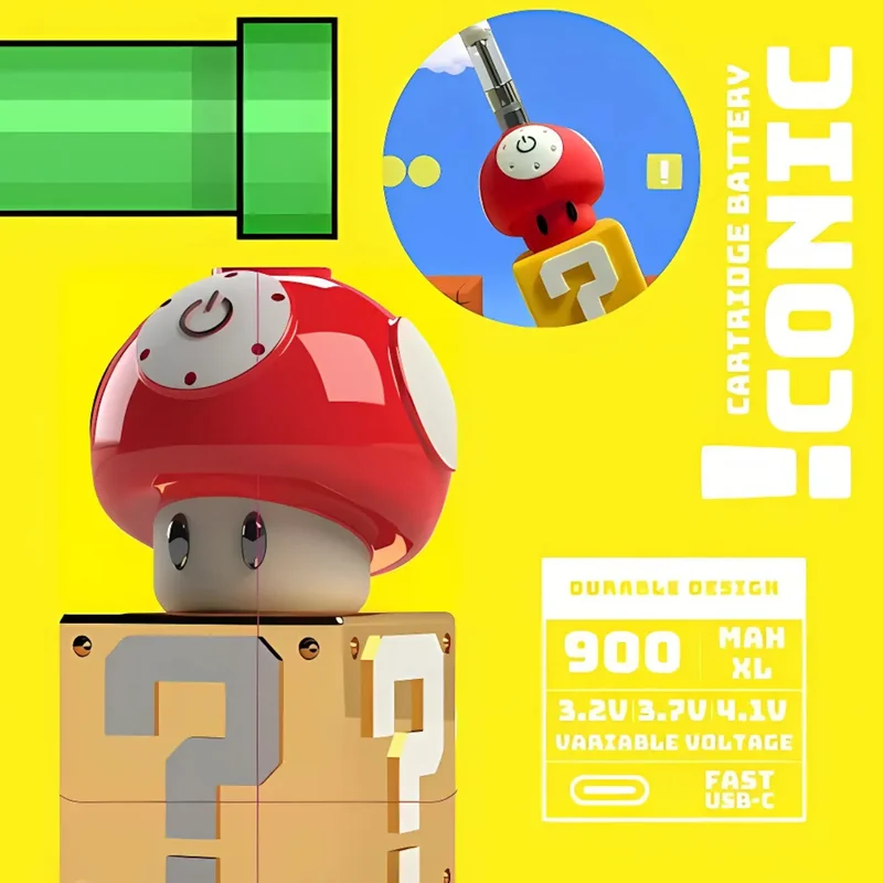 ICONIC CARTRIDGE BATTERY 510 THREAD MUSHROOM DESIGN The ICONIC Cartridge Battery 510 Thread – Mushroom Design is a stylish and high-performance vape battery built for smooth, reliable performance . Compatible with most 510-thread cartridges , this compact and lightweight device offers enhanced vapor production with adjustable voltage settings for a customizable experience. Featuring a vibrant mushroom-themed design , this battery is perfect for those who want a unique and fun vaping accessory .