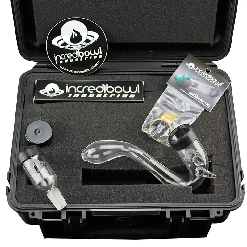 The Incredibowl m420 Deluxe has new look! The Deluxe edition now comes with the Standard m420 , Footed Glass Sherlock , Redibowl Ash Catcher , Quickdraw trigger system , and a replacement parts kit . All securely stored in a large military hard case!
