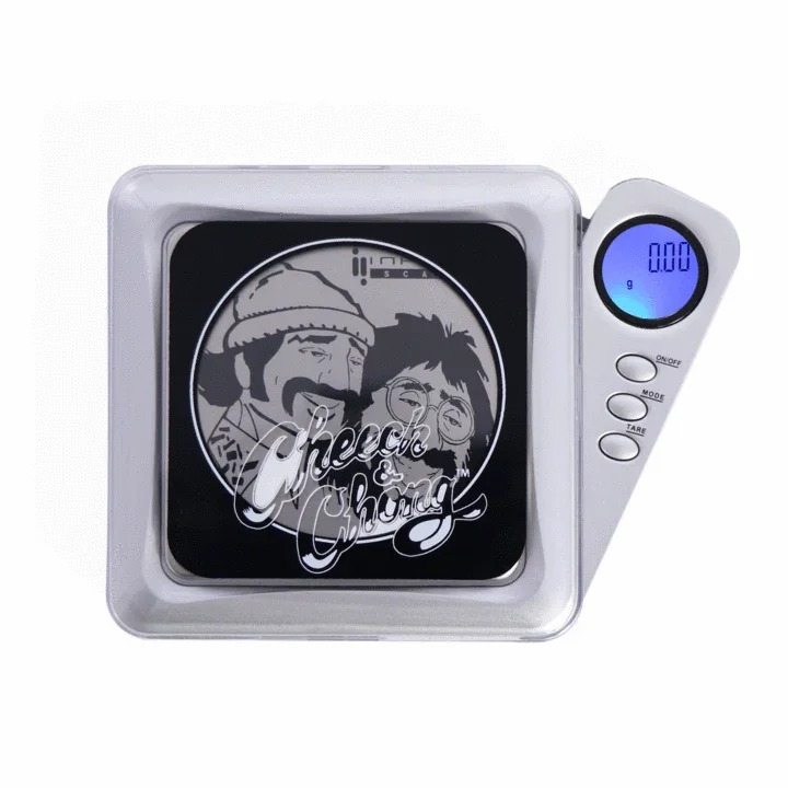 MSRP $18.99 Cheech and Chong Panther, Licensed Digital Pocket Scale, 50G x 0.01G The Infyniti Cheech and Chong Panther Scale maintains the high quality of the Infyniti brand with that extra bit of style. Feel like a G with these high quality digital pocket scales. Scale Features: Capacity: 50g Accuracy: 0.01g Digital display with blue backlight Auto shut off after 60 seconds no activity Large stainless steel weighing platform Standard weight auto calibration 2 x AAA batteries included
