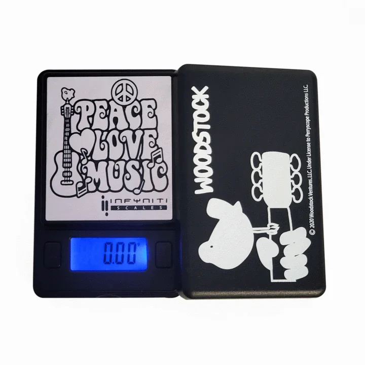 MSRP $17.99 Woodstock Virus Licensed Digital Pocket Scale, 50g x 0.01g The Infyniti Wood Stock Virus maintains the high quality of the Infyniti brand with that extra bit of style. Feel like a G with these high quality digital pocket scales. Scale Features: Capacity: 50g Accuracy: 0.01g Digital display with blue backlight Auto shut off after 60 seconds no activity Large stainless steel weighing platform Standard weight auto calibration 2 x AAA batteries included