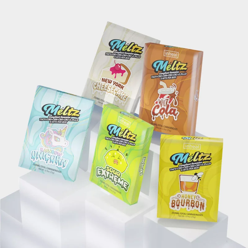 Inheal Meltz Gummies deliver 100mg of hemp-derived Delta 9 THC per gummy, with a balanced mix of THCV, CBD, CBN, CBG, and CBC for an amazing entourage effect. Each pack contains five lab-tested gummies made with 100% natural ingredients, free from heavy metals and bleaches, and sourced from premium U.S.-grown hemp. Portable, discreet, and compliant, these potent gummies bring flavor and relaxation wherever you go.