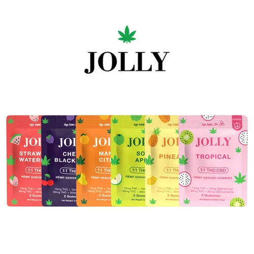 Shop/Products/1:1 THC:CBD Gummies 60mg 2ct (Display of 30) by JOLLY *Drop Ship* (MSRP $4.99 Each)