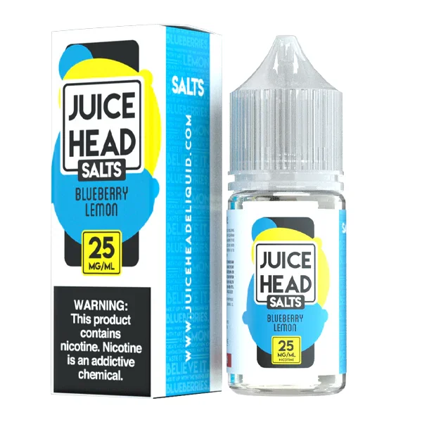 NICOTINE SALTS | Individual Bottles Flavor : Blueberry Lemon by Juice Head Salt combines sweet blueberry and sour lemon flavors. The ideal nic salt vape juice for pod systems. E-liquid contents : 30mL Nicotine Strengths : 25mg and 50mg Blended for use with Pod Systems Browse more E-Liquid Brands Here