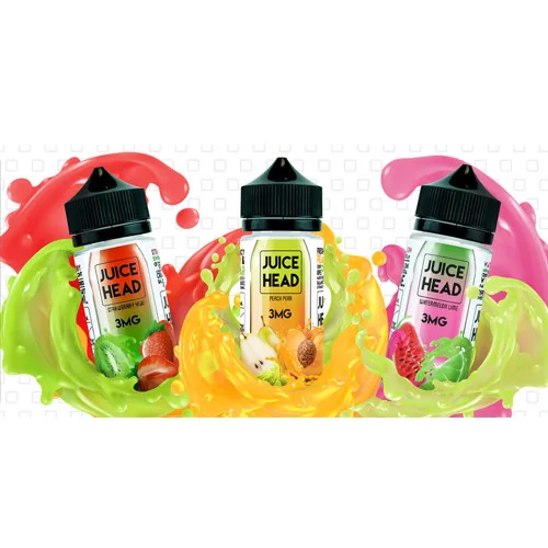 JUICE HEAD | 100 ML FLAVORS : Strawberry Kiwi : Reminiscent of vine-ripened Strawberries accented with Creamy Tart and a taste of Kiwi. Watermelon Lime : A mouthful of crisp Watermelon paired with an extra ripe sweet Lime. Blueberry Lemon...