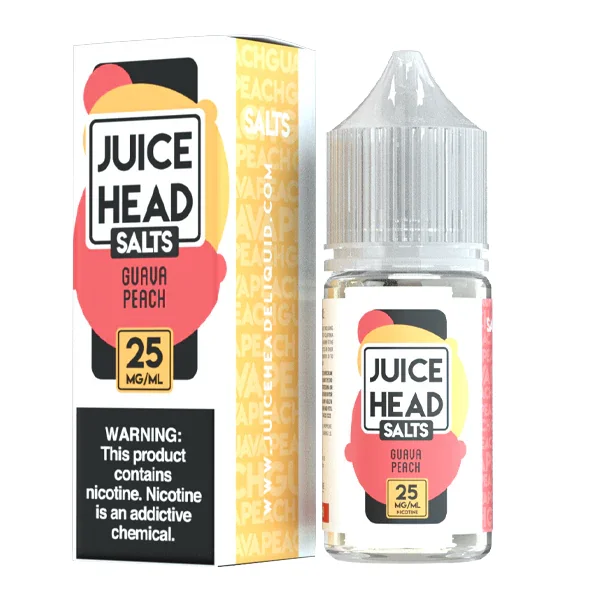 NICOTINE SALTS | Individual Bottles Flavor : Guava Peach by Juice Head Salt blends a tropical guava with a ripe peach taste. E-liquid contents : 30mL Nicotine Strengths : 25mg and 50mg Blended for use with Pod Systems Browse more E-Liquid Brands Here
