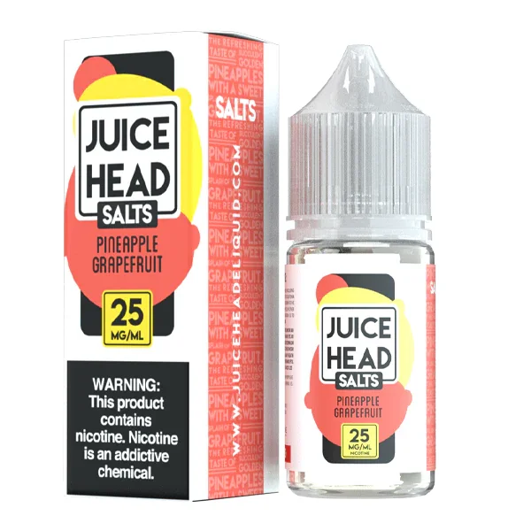 NICOTINE SALTS | Individual Bottles Flavor : Pineapple Grapefruit by Juice Head Salt combines sweet and sour flavors with a tropical pineapple taste blended with puckering grapefruits. E-liquid contents : 30mL Nicotine Strengths : 25mg and 50mg Blended for use with Pod Systems Browse more E-Liquid Brands Here