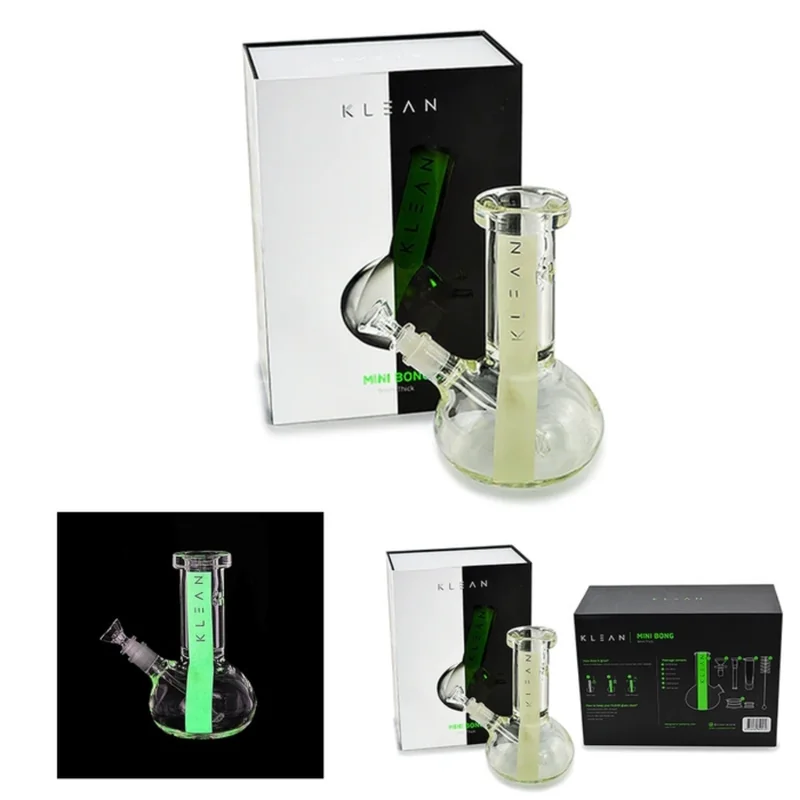 KLEAN GLOW IN THE DARK WIDE TIP MINI BONG 8" GLASS WATERPIPE 6 PCS KIT Product Description: Enjoy smooth and satisfying hits with the Klean Glow-in-the-Dark Wide Tip Mini Bong 8" Glass Waterpipe (Clear) . Designed for portability and performance , this compact 8-inch waterpipe features a wider tip for improved airflow and smoother draws. The glow-in-the-dark design adds a stylish touch, making it a standout piece for night sessions. Constructed from high-quality clear glass , this 6-piece