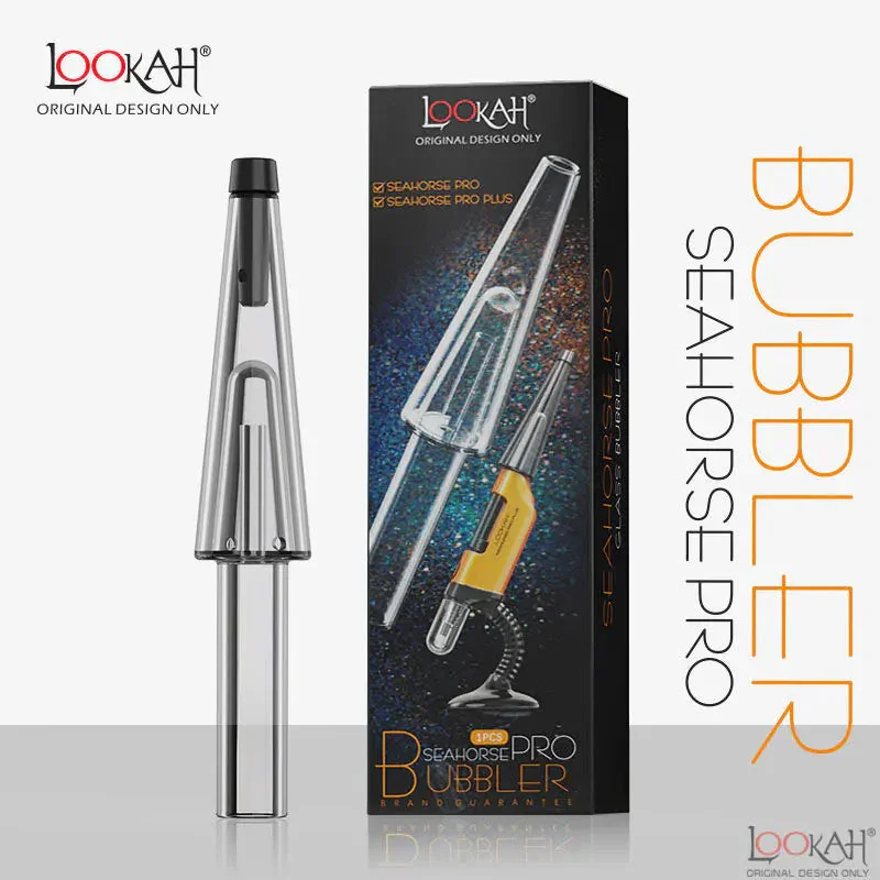 MSRP $29.99 Glass Bubbler for the Lookah Seahorse Pro and Seahorse Pro Plus Dab Pen. This glass bubbler is specifically designed for the Lookah Seahorse Pro and Pro Plus vape pens. It will not fit other Lookah vape devices or dab pens. If you want to enjoy cool rips from the Seahorse Pro Plus or Seahorse Pro then this is the accessory for you. This sleek glass bubbler slides into the Seahorse Pro Plus, replacing the glass mouthpiece the device comes with. Add a small measure of water (just above the percolation holes) and enjoy massive water-filtered rips. It will effectively turn your dab pen into a portable dab rig, making the Lookah Pro Plus one of the smallest and most portable water-filtered dab pens available to date. How to Use Remove the silicone stopper of the seahorse pro bubbler. Pour about 2ml of water into the top of the bubbler until it just covers the percolator holes. Use a pipette or oral syringe if needed. Replace the silicone stopper to prevent splashback. While in use, keep the seahorse pro/pro plus with bubbler upright to prevent water from spilling out. After using it, remove the stopper and pour out the water. Cleaning This glass bubbler can be cleaned with isopropyl alcohol and coarse salt. Add the salt and alcohol to the glass. Be sure to cover the holes on the base and top of the bubbler. Shake well for a few minutes to remove any dirt or residue. After, rinse thoroughly to ensure no salt or alcohol remains on the glass. Kit Comes With 1 x Glass Bubbler