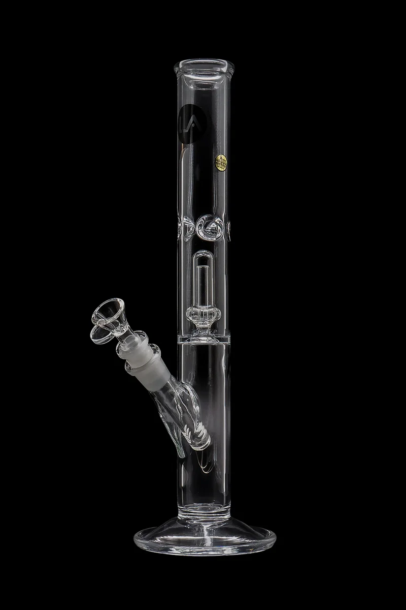 A straight, sleek tube packed with a single or double showerhead perc for perfect hits. This straight, showerhead percolator water pipe deserves a place on your coffee table. Created by UPC, this piece is complete with either one or two sets of tree percs and a diffused downstem. This bong is even equipped with an ice pinch for ultra smooth hits. So functional, and you can grab this scientific glass at a bargain price! Single Perc: 12" tall Double Perc: 14" tall Need a replacement or extra downstem and flower bowl for this piece? Check out the Sleek and Simple 18mm to 14.5mm Female Downstem in 3.5 inches and the Round Glass Bowl in 14.5mm.