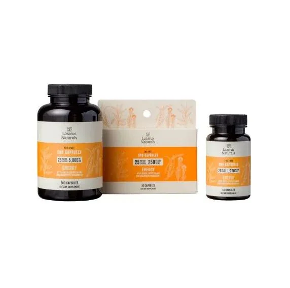 25mg CBD capsules. Available in 10, 40, and 200 count Contains Vitamin B12 and Caffeine May take up to 2 hours for full effects, take more as needed. Vegan and gluten-free with no artificial flavors, preservatives or sweeteners. Consult your doctor before use if you have been advised against eating grapefruit Ingredients Organic Brown Rice Flour, L-Theanine, Rhodiola, Vegetable Cellulose (Capsule), Caffeine, CBD Isolate, Vitamin B12, Coconut Oil.