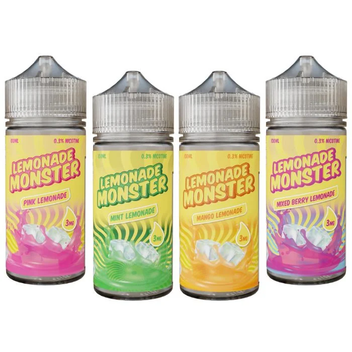 Lemonade Monster E Liquid offers a selection of vibrant lemonade flavors, including Pink Lemonade and Blueberry Lemonade. Available in 100ml bottles with nicotine strengths of 0MG, 3MG, and 6MG, this high-VG formula is perfect for a balanced and enjoyable vape, whether you prefer MTL or DL vaping. Lemonade Monster E Liquid Features: Nicotine Strengths: Available in 0MG, 3MG, and 6MG options to suit different preferences. Bottle Size: Comes in large 100ml bottles for extended vaping. Flavor Range: Features a delicious selection of lemonade-based blends, including Pink Lemonade, Blueberry Lemonade, and Watermelon Lemonade. Perfect Balance: Expertly crafted with a balance of sweet and sour for a refreshing vape. High-VG Formula: Ideal for both MTL (Mouth-to-Lung) and DL (Direct-Lung) vaping styles. Premium Quality: Made by Monster Vape Labs, known for top-tier flavor and consistency. All-Day Vape: Great for vapers looking for an all-day enjoyable experience. Lemonade Monster E Liquid Flavors:: Blueberry Lemonade: A refreshing blend of tangy lemonade and sweet blueberries. Mango Lemonade: Exotic mangoes infused with zesty lemonade for a tropical twist. Mint Lemonade: Crisp mint paired with classic lemonade for a cool and invigorating vape. Pink Lemonade: Sweet and tart pink lemonade, perfect for a refreshing vape experience. Strawberry Lemonade: Juicy strawberries mixed with tangy lemonade for a fruity delight. Watermelon Lemonade: A delicious combination of sweet watermelon and tangy lemonade. Lemonade Monster E Liquid Wholesale: Lemonade Monster E Liquid offers zesty, refreshing lemonade flavors that are perfect for a revitalizing vape. Available for wholesale, this e-liquid is ideal for shops wanting to provide customers with a tangy, enjoyable vaping experience.