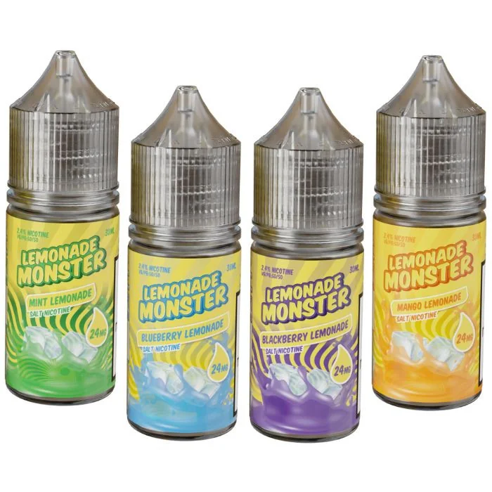 Lemonade Monster Nicotine Salts deliver bold lemonade flavors like Pink Lemonade and Watermelon Lemonade. These 30ml bottles are available in nicotine strengths of 24MG and 48MG, designed for a smooth and satisfying MTL vape. Crafted by Monster Vape Labs, they ensure quality and rich flavor. Lemonade Monster Nicotine Salts Features: Nicotine Strengths: Available in 24MG and 48MG to cater to different preferences. Bottle Size: Comes in convenient 30ml bottles for easy use. Flavor Range: Features delicious lemonade blends, including Pink Lemonade, Blueberry Lemonade, and Watermelon Lemonade. Balanced Sweet & Sour: Offers a perfect balance of sweet and sour flavors for a refreshing vape. Potent Nicotine Punch: Designed for vapers seeking a stronger nicotine hit with smooth satisfaction. Premium Quality: Crafted by Monster Vape Labs, ensuring top-tier flavor and consistency. Perfect for MTL Vaping: Optimized for Mouth-to-Lung vaping style for a satisfying nicotine experience. Lemonade Monster Nicotine Salts Flavors: Blueberry Lemonade: A delightful blend of sweet blueberries and tangy lemonade. Mango Lemonade: Exotic mango meets the classic lemonade twist. Mint Lemonade: Crisp mint infused with zesty lemonade for a refreshing vape. Pink Lemonade: A sweet and tart pink lemonade flavor that invigorates. Strawberry Lemonade: Juicy strawberries combined with lemonade's zest. Watermelon Lemonade: Refreshing watermelon mixed with a splash of lemonade. Lemonade Monster Nicotine Salts Wholesale: Lemonade Monster Nicotine Salts combine vibrant lemonade flavors with smooth nicotine delivery. This wholesale option is perfect for vape shops looking to offer a satisfying, flavorful nicotine salt experience that customers will love.