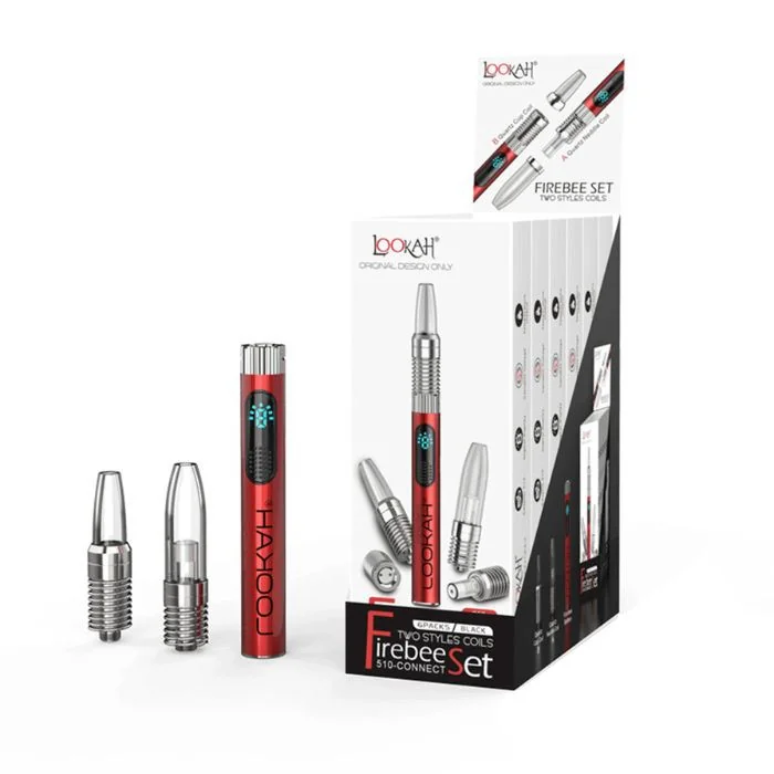 Lookah Firebee 650mAh 510 VV Vape Pen Battery With Two Style Coils - Display of 6The Lookah FIREBEE 510 threaded pen battery vape has 3 temperature controls and 650mAh of power for your 510 vape cartridges. This slimline vape battery is 98mm long and 14mm in diameter so it slides easily into any pocket or purse. The large-capacity battery has a digital display has a segmented battery readout. Together those show the voltage setting and the remaining battery life. Features:Battery: 650mAhVariable Voltage510 ThreadTwo Style Coils Easy to Clean Flavors: Black Blue Gray Orange Red Included:6 x Lookah Firebee 650mAh 510 VV Vape Pen Battery With Two Style Coils