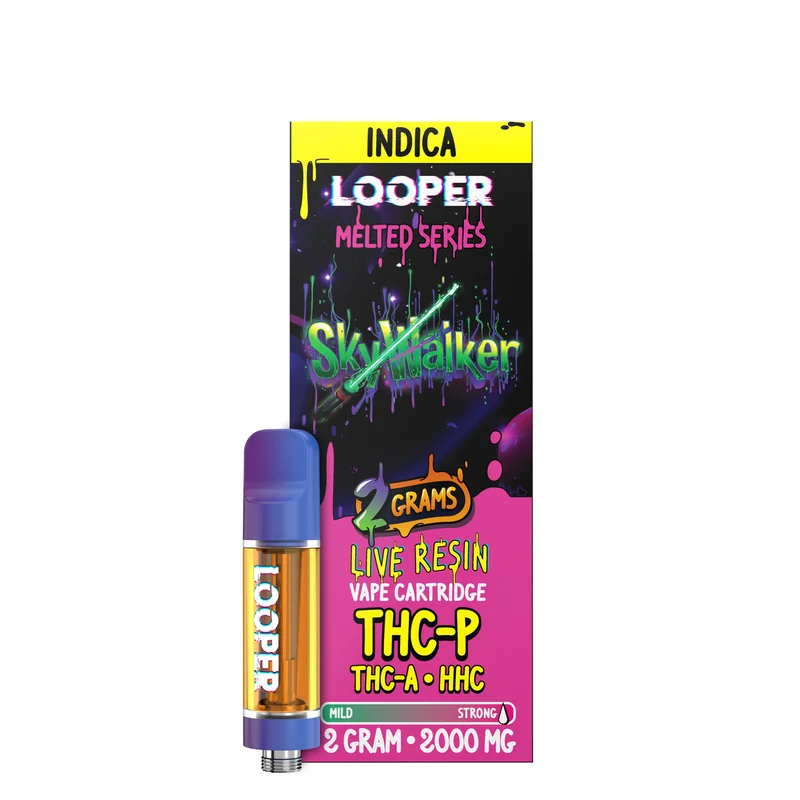 Melted Series 2G: Skywalker OG The Looper Melted Series 2G: Skywalker OG takes one of the most recognizable flavor profiles in hemp and delivers it in a clean, reliable cartridge designed for performance. Compact, balanced, and easy to use, this 2-gram cartridge reflects the Melted Series standard—quality ingredients, tested formulation, and consistent vapor every time. Built for Consistency and Compatibility The Melted Series 2G line is engineered for users who want dependable hardware and pure flavor delivery. Each cartridge is built around even heating, preventing hot spots and maintaining terpene integrity throughout every draw. The 2-gram capacity offers the perfect balance between portability and longevity, making it a solid option for regular use. Compatible with standard 510-thread batteries, each cartridge connects seamlessly and operates smoothly with steady airflow. Once paired, it’s ready to go—no complicated setup or maintenance required. Skywalker Strain Heritage The Skywalker strain carries a long reputation for its grounded, earthy notes and subtle citrus lift. Originating from Skywalker × OG Kush, this strain is known for its aromatic depth and balanced flavor. Looper’s Melted Series cartridge keeps that natural terpene character intact, offering an authentic flavor experience that stays true to its roots. Flavor Profile Earthy Base: Warm and herbal with depth that defines the Skywalker lineage. Pine & Spice: Adds freshness and a subtle sharpness to each inhale. Citrus Accent: A light, clean finish that brightens the overall flavor. Looper focuses on preserving the Skywalker strain’s real terpene profile without unnecessary additives or artificial sweetness. Why Choose the Looper Melted Series Every product in the Looper Melted Series is designed to combine craftsmanship and compliance. The cartridges are manufactured using precision hardware that minimizes clogs and leaks while maximizing vapor quality. From materials to formulation, every c...