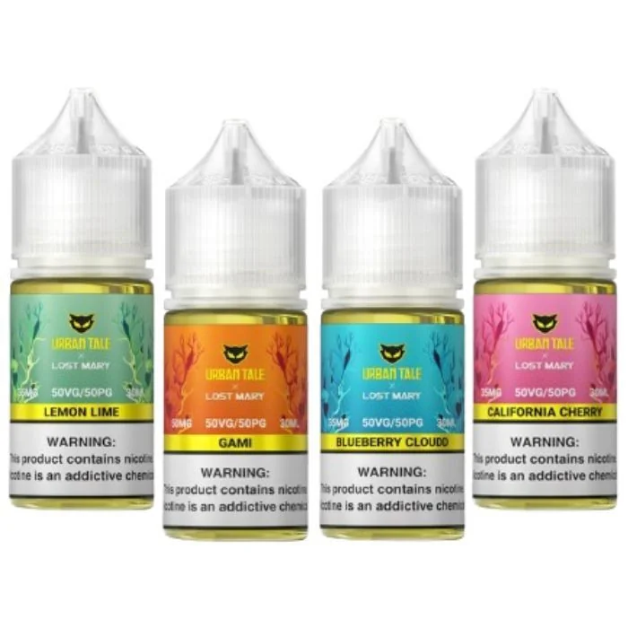 Discover the perfect vaping experience with Urban Tale and Lost Mary, now available in a convenient 30ml bottle for easy refills. Choose from two nicotine strengths: 35mg or 50mg, to satisfy your cravings. Our balanced 50/50 VG/PG ratio ensures strong throat hits without compromising on flavor. Urban Tale x Lost Mary Nicotine Salts Flavors Available: Berry Ice: A frosty blend of mixed berries for a refreshing vape. Blueberry Cloud: Sweet, ripe blueberries with a smooth finish. California Cherry: Juicy California cherries for a tart and sweet experience. Gami (Sour Gummy): Tangy sour gummy candies that burst with flavor. Grapple Peach: A unique mix of grapes and peaches for a juicy vape. Lemon Lime: Zesty lemon and lime for a citrusy delight. Miami Mint: Cool minty freshness, perfect for an invigorating vape. Razz Ice: A frosty raspberry blend for a cool, fruity sensation. Strawberry Ice: Sweet strawberries with a cool icy twist. Strawberry Mango: A delightful combination of ripe strawberries and juicy mangoes. Tropical Mango Ice: Exotic mangoes with a refreshing icy finish. Watermelon Ice: Crisp, sweet watermelon with a refreshing menthol touch. Experience the exceptional flavors of Urban Tale and Lost Mary, designed to deliver ultimate satisfaction with every puff.