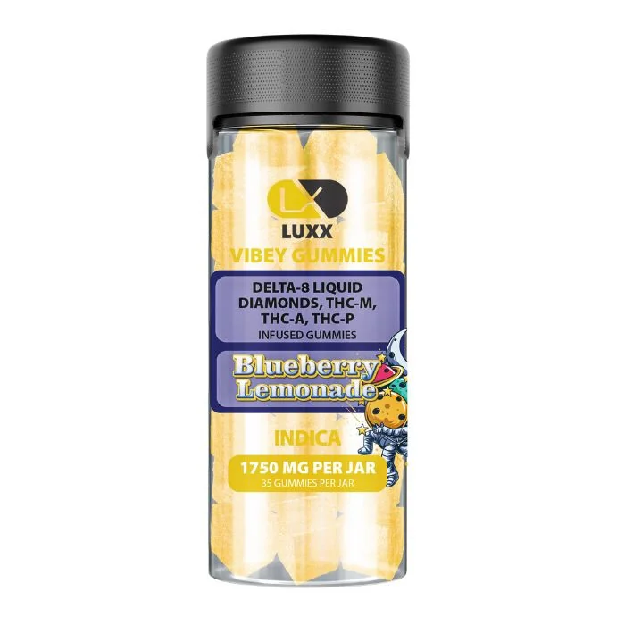 Luxx Vibey Gummies offer a premium blend infused with Delta 8, Liquid Diamonds, THC-M, THC-A, and THC-P for a comprehensive cannabinoid experience. Each gummy contains 50 mg of cannabinoids, with 1750 mg per jar, ensuring powerful effects. Expertly crafted for relaxation, euphoria, or creativity, these gummies come in a variety of delightful flavors, making every bite a luxurious experience. Perfect for sharing or enjoying at your pace. Luxx Vibey Gummies Features: Premium Blend: Infused with Delta 8, Liquid Diamonds, THC-M, THC-A, and THC-P for a comprehensive cannabinoid experience. High Potency: Each gummy contains 50 mg of cannabinoids, with a total of 1750 mg per jar, ensuring a powerful effect. Expertly Crafted: Designed for a smooth and satisfying journey, offering relaxation, euphoria, or creativity with each bite. Flavorful Indulgence: Comes in a variety of delicious flavors, making the experience enjoyable and luxurious. Convenient Packaging: Each jar contains 35 gummies, perfect for sharing or enjoying at your own pace. Balanced Effects: Provides a perfect balance of effects tailored to enhance your day, whether you're unwinding or seeking inspiration. Luxx Vibey Gummies Flavors/Strain: Blueberry Lemonade (Indica): A soothing blend of tangy lemonade and sweet blueberries for ultimate relaxation. Cherry Utopia (Sativa): Energizing cherry notes to inspire creativity and focus. Grape (Indica): Rich grape flavor for a calming and mellow experience. Mixed Fruits (Hybrid): A delightful medley of fruit flavors, offering balanced effects. Pineapple (Sativa): Tropical pineapple for a burst of uplifting euphoria. Strawberry Delight (Hybrid): Sweet strawberry flavor with a harmonious mix of effects. Luxx Vibey Gummies—where luxury meets a new level of enjoyment.