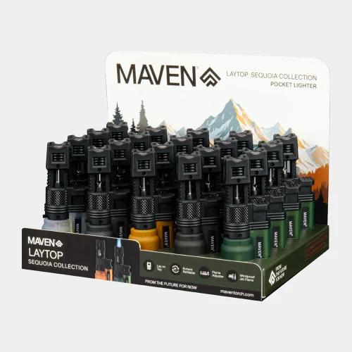 The Maven - Laytop Torch - Sequoia - 20ct Display is a premium smoking accessory. Suggested retail price $6.00. Perfect for retail display and consistent seller. Available at wholesale pricing from Port City Wholesale.