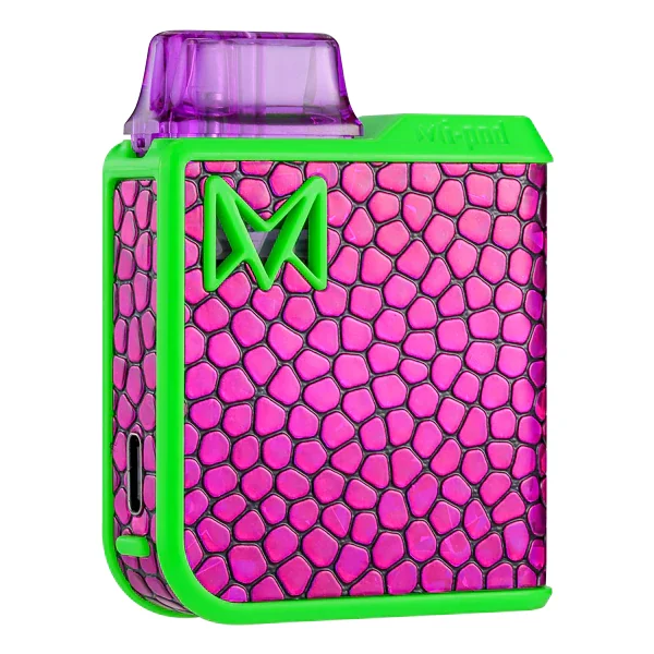MI-POD PRO WITH USB-C The Purple Pebbles Mi-Pod creates a bridge between senses with a two-layered design, featuring a pebbled texture laid over a luminous refractive material. Polychromatic designs provide a mind-bending experience, watch as the prismatic patterns change in various angles of light. Inspired by a universal love for color. Browse more Mi-Pod PRO Kits here *Not Compatible with Wi-Pod Pods 0.9 OHM Coil Resistance MESH COIL USB-C Rechargeable 950mAh Battery Filling Instructions Remove the Silicone 'Open Tab' Fill with E-Liquid through the side filling port Give the Pod time to wick to prevent dry hits Align pins on the Pod to Connectors inside device What's Included Each Mi-Pod PRO + Kit Includes: 1x Mi-Pod PRO + Device 2x Mi-Pod PRO Pods 2x Mi-Pod Lanyard Connectors 1x USB-C Charger 1x User Manual View the User Manual Here img { margin: 0px auto; } .spec-subt { display: block; font-size: 12px; } .mipod-plus-header { text-align: center; } .mipod-plus-body { width: 100%; } .mipodPlus-container { margin: 10px; } .hide-mobile { display: none !important; } .hide-desktop { display: block !important; } .fi-text * { margin: 0px; } .filling-instructions { display: flex; flex-direction: row; justify-content: center; align-items: center; } .fi-text, .fi-image { flex-basis: 45%; padding: 12px 6px; } .wi-text, .wi-image { flex-basis: 45%; } .wi-row { display: flex; flex-direction: row; justify-content: center; align-items: center; } @media screen and (max-width: 700px) { .spec-box { display: flex; flex-direction: row; flex-wrap: wrap; justify-content: center; align-self: center; } .spec-card { flex-basis: 45%; } .hide-mobile { display: block !important; } .hide-desktop { display: none !important; } .filling-instructions { flex-direction: column; } .wi-row { display: flex; flex-direction: column; } } -->