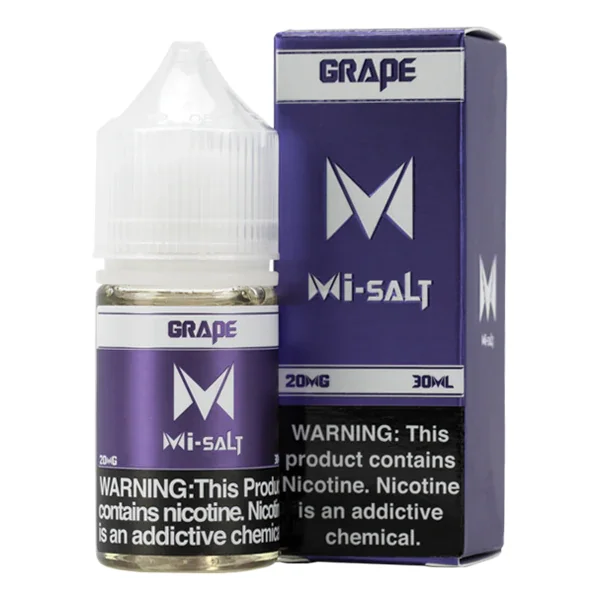 NICOTINE SALTS | PACK OF 6 Flavor : Grape Mi-Salts by Mi-One brands provides a true grape flavor, using extracts from portuguese white grapes followed by a crispy green apple exhale. end your search for a real grape flavor, experience our truly sweet nicotine salt. E-liquid contents : 30mL Nicotine Strengths : 20mg and 40mg Blended for use with Pod Systems Browse more E-Liquid Brands Here
