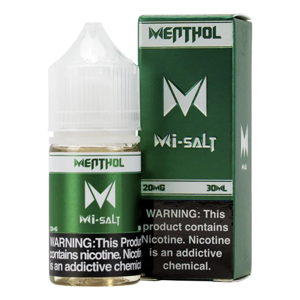 NICOTINE SALTS | PACK OF 6 Flavor : Menthol Mi-Salts by Mi-One brands stands out from other flavors with it's variety of strong menthols blended into an sweet icy masterpiece. combine this complex blend of spearmint notes, menthol flavors, and earthy undertones with your favorite vape juice flavors to create your own unique icy masterpiece. E-liquid contents : 30mL Nicotine Strengths : 20mg and 40mg Blended for use with Pod Systems Browse more E-Liquid Brands Here