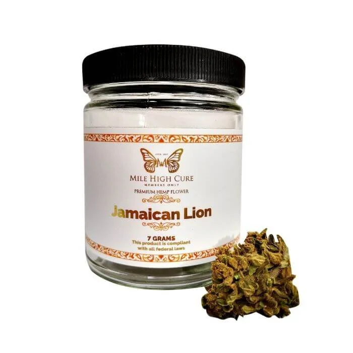 Jamaican Lion – herbal, grassy, and sweet aroma with a hint of spearmint and lemon. Mile High Cure carries some of the most popular and hard to get CBD strains to offer its customer a true Member´s Only Experience. These products will blow you away with its flower structure and pungent smell. All our products are 100% in compliance with federal law. This is a great alternative to smoking cigarettes. Once you try our Premium CBD Hemp Flower you will quickly know why we are one of the top CBD companies in the world.Includes: 7gr Jar Mile High Cure CBD Jamaican Lion Hemp Flower