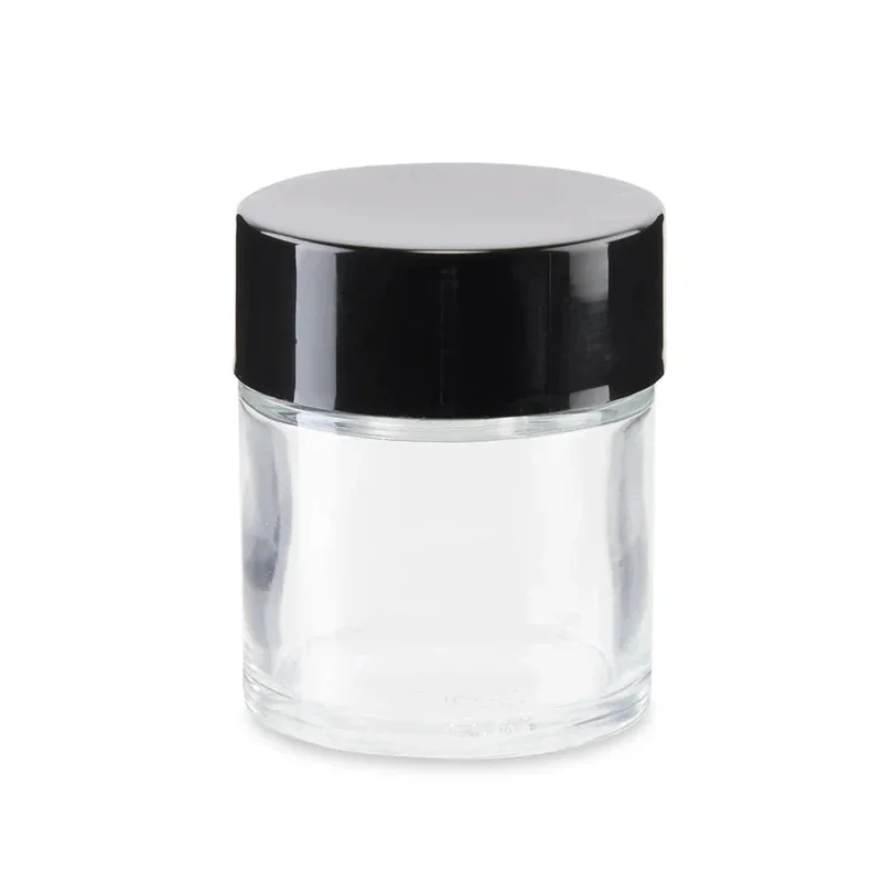 Shop/Products/1 oz Clear Glass Child Resistant Jar With Smooth Black Lid - (200 Count)