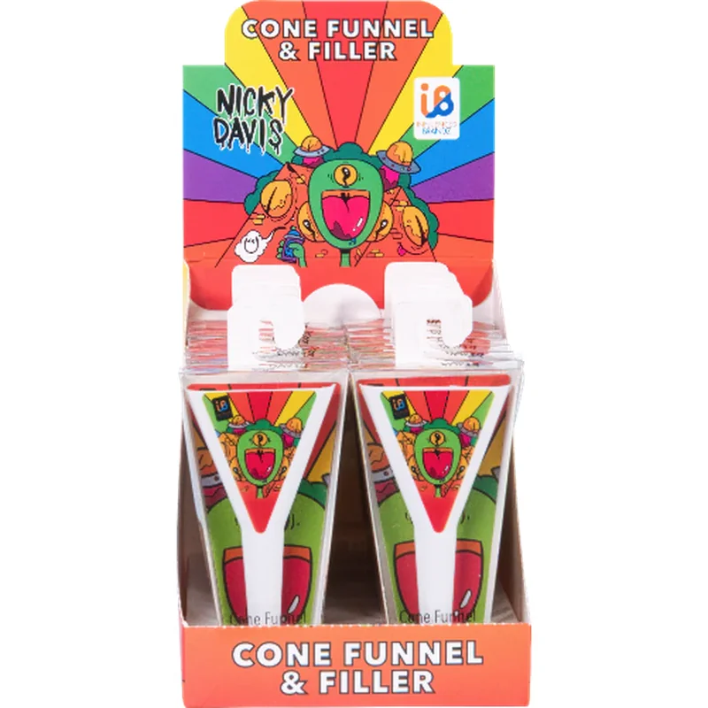 MSRP $7.99 PER FILLER The cone funnel helps you achieve precision while filling cones, eliminating any mess or waste – the Cone Funnel & Filler makes the process effortless. Not only is this product a practical tool for cone enthusiasts, but it also doubles as a statement piece. The inclusion of Nicky Davis’ Ghost gang artwork adds a touch of artistic flair, making these units a conversation starter and a collector’s item for fans of the renowned artist.