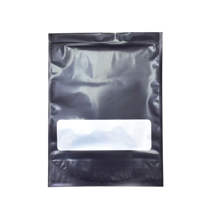 Available with Small Window 100, 200, 400, 600, 800, or 1,000 counts Size: 14.25" x 19" x 6" Ideal for Edible or Flower Packaging Color: Vista Black Capacity: 1 Pound Matte Square Corners This Bag is Heat Sealable Bags are Pre-Zipped to Ensure a Sanitary Interior, Protect Against Dust, Debris, and Handling During Transit