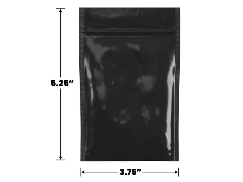These Mylar zipper bags serve a variety of purposes for the needs of all dispensaries. For those who need a nice zipper pouch or bag in specific gram or ounce sizes, you would be able to select from a variety of baggie sizes to suit your specific needs. These were for retail marijuana, medical marijuana medication, or for tamper proofing concentrate containers for wax, dabs, and oil concentrates. 100 to 50,000 Count Size: 3.75" x 5.25" Sticker Area: 3.25" x 3" Color: Full Black (Black Front and Black Back) Capacity: 1/8 Ounce This Bag is Heat Sealable Ideal for Edible or Flower Packaging What size Mylar Bag do I need? glossy Square Edges Opaque in color so it's naturally UV blocking! Our Mylar Bags are available in the following sizes and varieties: 1 Gram 1/8 Oz 1/4 Oz 1/2 Oz 1 Full Oz Large Bags Edible Bags Vacuum Bags Preroll Bags Child Resistant Bags Exit Bags For other answers to questions people also ask, head over to our FAQ and People Also Ask section. Bags are Pre-Zipped to Ensure a Sanitary Interior, Protect Against Dust, Debris, and Handling During Transit
