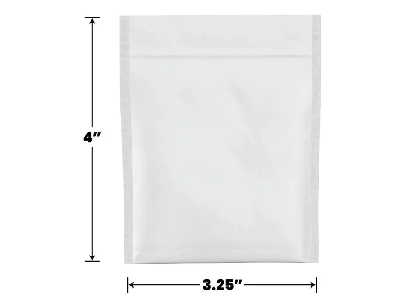 Mylar Bag Opaque White Finish is Glossy 1 Gram Size: 3.25" x 4" Sticker Area: 2.75" x 2" 100 to 20,000 Count This Bag is Heat Sealable Opaque in color so it's naturally UV blocking! Ideal for Edible or Flower Packaging What size Mylar Bag do I need? Mylar Bag may have a hang hole. The hanging hole allows hanging on a pegboard or display stand. Our Mylar Bags are available in the following sizes and varieties: 1 Gram 1/8 Oz 1/4 Oz 1/2 Oz 1 Full Oz Large Bags Edible Bags Vacuum Bags Preroll Bags Child Resistant Bags Exit Bags For other answers to questions people also ask, head over to our FAQ and People Also Ask section. Bags are Pre-Zipped to Ensure a Sanitary Interior, Protect Against Dust, Debris, and Handling During Transit Get Custom Printed Stickers FAST!