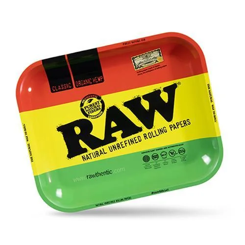 MSRP $9.99 Description: The RAW Authentic Rawsta Large Rolling Tray is made from smooth-coated thick metal which results in comfortable touch when handling or touching. The thick metal is resistant to bending and warping, and the softly curved edges stop tobacco or herbs from getting stuck in any corners. This tray is sized Large, this means that it will easily fit in it all your smoking goodies. RAW made this tray with a smooth finish for an enhanced experience with a comfortable touch. This tray is gorgeously rasta represented by the beautiful green yellow and red coloring, totally different from any other RAW tray ever made. Perfect for when you're rolling up top-shelf RAW Paper. Raw Rawsta Rolling Tray 1 Count 5 Count 10 Count L 10.75” X W 13.5” X H 1”