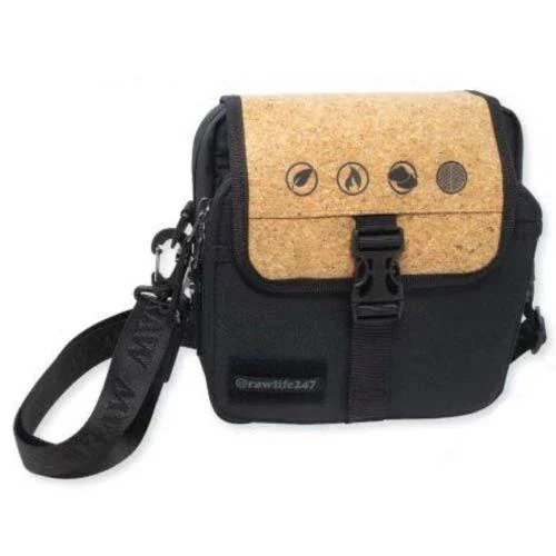 MSRP $69.99 Description: RAW Day Bag with genuine cork top. Features a built-in rolling tray and cross-banded storage area to keep supplies accessible and secure. The multiple stash pockets and storage compartments contain an activated charcoal lining making it smell-proof. To top it all off this bag also contains a removable foil pouch and built-in rolling tray so you can be prepared to roll up no matter where you are! Multiple pouches Full-foil removable insert bag! Smell-blocking Liner Velcro swappable patches Sold Individually