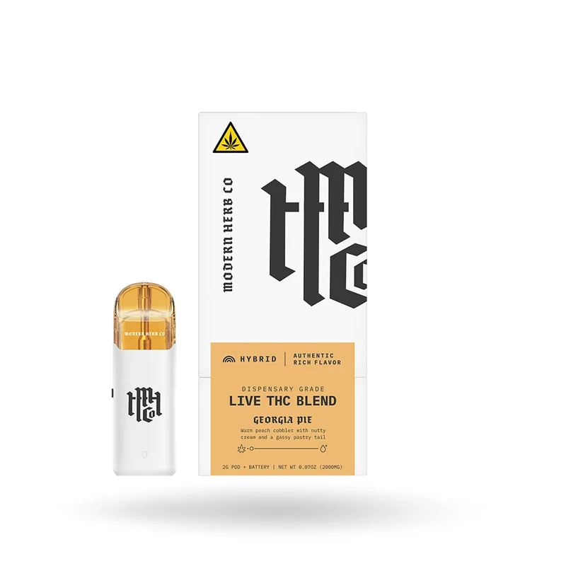 Modern Herb Co Pod Starter Kit Live THC – 2g (6-Pack) The Modern Herb Co Live THC Pod Starter Kit is designed for vape retailers and wholesale buyers looking to offer a premium, ready-to-use pod system with consistent effects and rich flavor. Each 2g pod is formulated with a high-quality full-spectrum blend of craft-made live resin, Delta-8 THC, and carefully selected minor cannabinoids for a smooth, terpene-forward vaping experience. Engineered for balance and reliability, these pods deliver functional effects without harshness, making them ideal for customers seeking dependable daytime, anytime, or nighttime options. Fully compliant and packaged in convenient 6-packs, this starter kit is perfect for retail shelves, bulk purchasing, and repeat sales. Flavor Profiles: Daytrip – Strawberry Haze: Sweet, ripe strawberry with light citrus haze for an uplifting, energizing vape. Daytrip – Sour Diesel: Classic diesel funk with sharp citrus notes, ideal for focus and daytime use. Anytime – Zkittlez Cake: Candy-sweet fruit blended with creamy cake undertones for smooth, all-day enjoyment. Anytime – Georgia Pie: Rich peach and baked dessert flavors with a mellow, balanced finish. Knockout – OG Kush: Earthy pine and spice delivering deep, full-body relaxation. Knockout – GMO: Bold garlic and herbal funk for heavy, long-lasting effects.