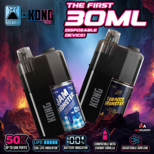 The Monster x Zilla Kong Disposable 50k Puffs Pod Kit w/ 30mL Salt (Assorted Flavors & Mgs) *Display of 5* is a ready-to-use disposable vape that delivers smooth, flavorful hits right out of the package. Delivering up to 30 puffs per device, This compact device requires no charging, no filling, and no maintenance — simply inhale to activate. Perfect for on-the-go use and a top seller in smoke shops. Available in wholesale quantities at Port City Wholesale.