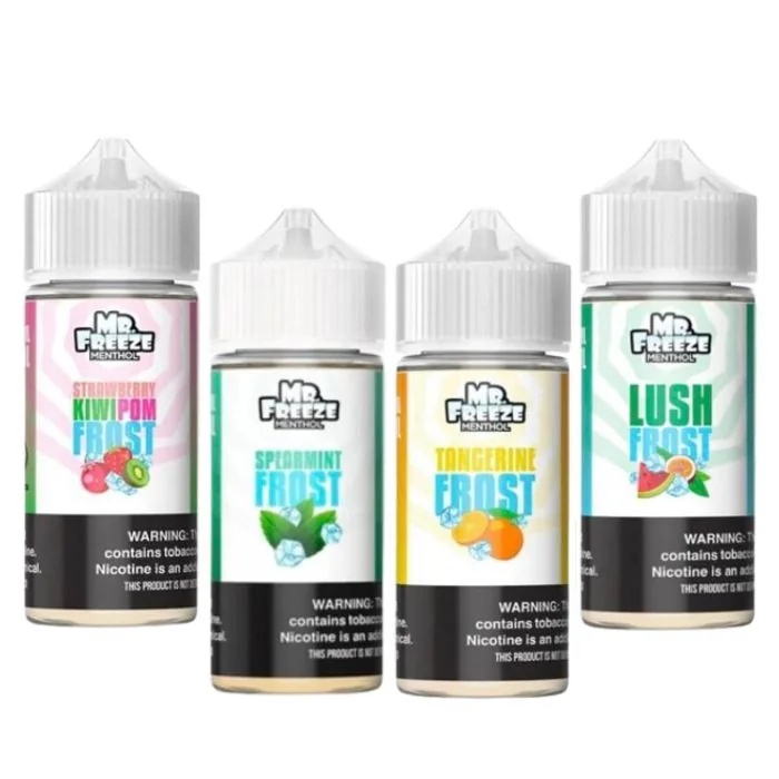 Mr. Freeze E-Liquids is a premium vape brand based in the United States, renowned for its wide selection of flavors crafted using high-quality ingredients and a variety of VG/PG compositions. The brand strives for integrity and perfection, with each juice flavor meticulously hand-mixed to deliver an exceptional vaping experience. Whether you're looking for a classic or innovative taste, Mr. Freeze E-Liquids has the perfect blend for you. Flavors: Cherry Frost: Sweet cherry with a refreshing icy exhale. Grape Frost: Juicy grape with a crisp, frosty touch. Lush Frost: Watermelon with a cooling menthol twist. Spearmint Frost: Crisp spearmint with an icy undertone. Strawberry Lemonade: Tangy lemonade blended with sweet strawberries.